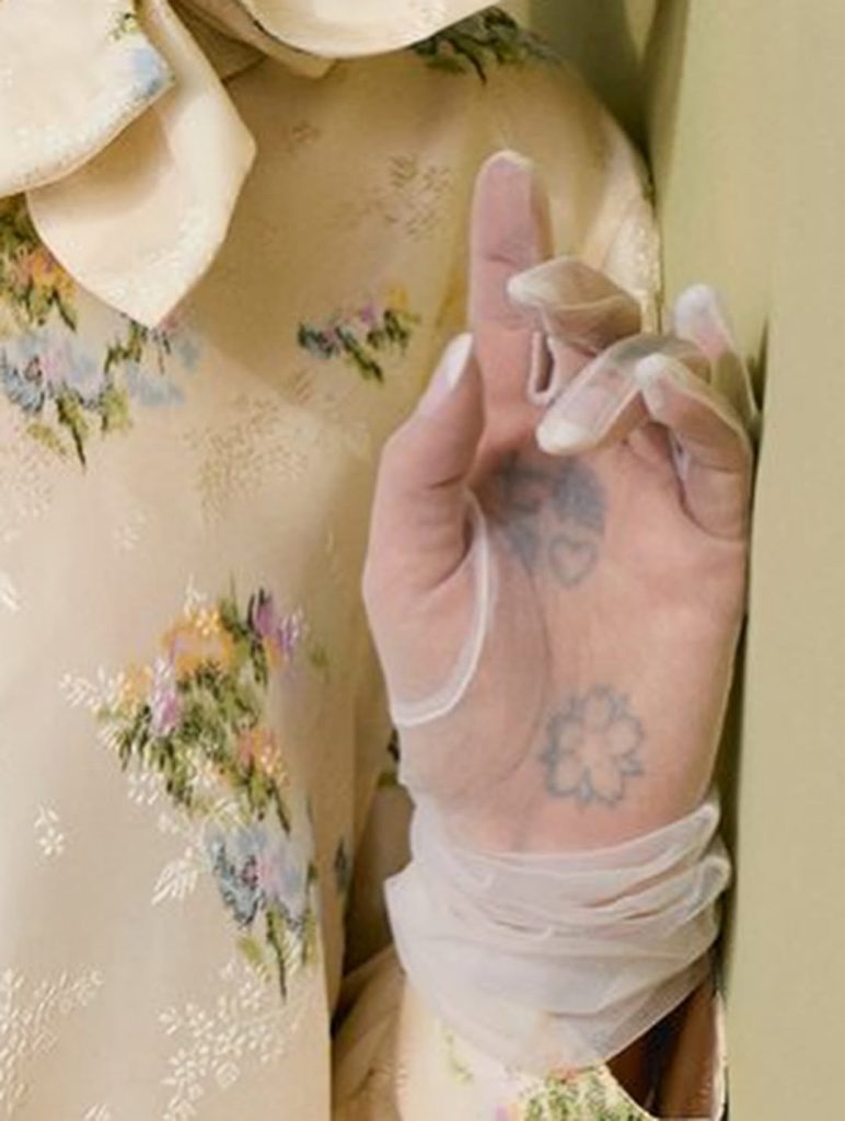 The image, circulated by fan account @ourpinkwitchh, shows Grande dressed in a cream floral Dior mini skirt and matching top, her left hand raised delicately in a sheer white glove. In a close-up crop, the outline of a second pinky appears to linger, faint but noticeable, just enough to spark speculation.