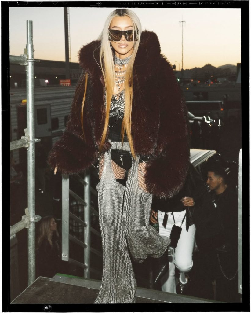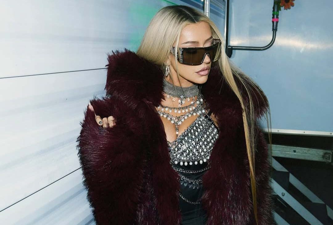 The look was all attitude: a black bodysuit covered in crystals, silver chaps, and fishnet tights. Aguilera finished it with silver jewelry, sunglasses, and her signature straight blonde hair, echoing the style she cemented two decades ago. It wasn’t just nostalgia—it was a sharper, updated version of a career-defining uniform.