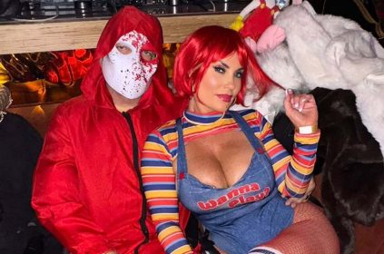 The look? A deep olive-green number that barely covered what needed covering, accentuated by matching nipple pasties and feathered details. Hair up, confidence on max—Megan wasn’t just making an entrance; she was making a statement.