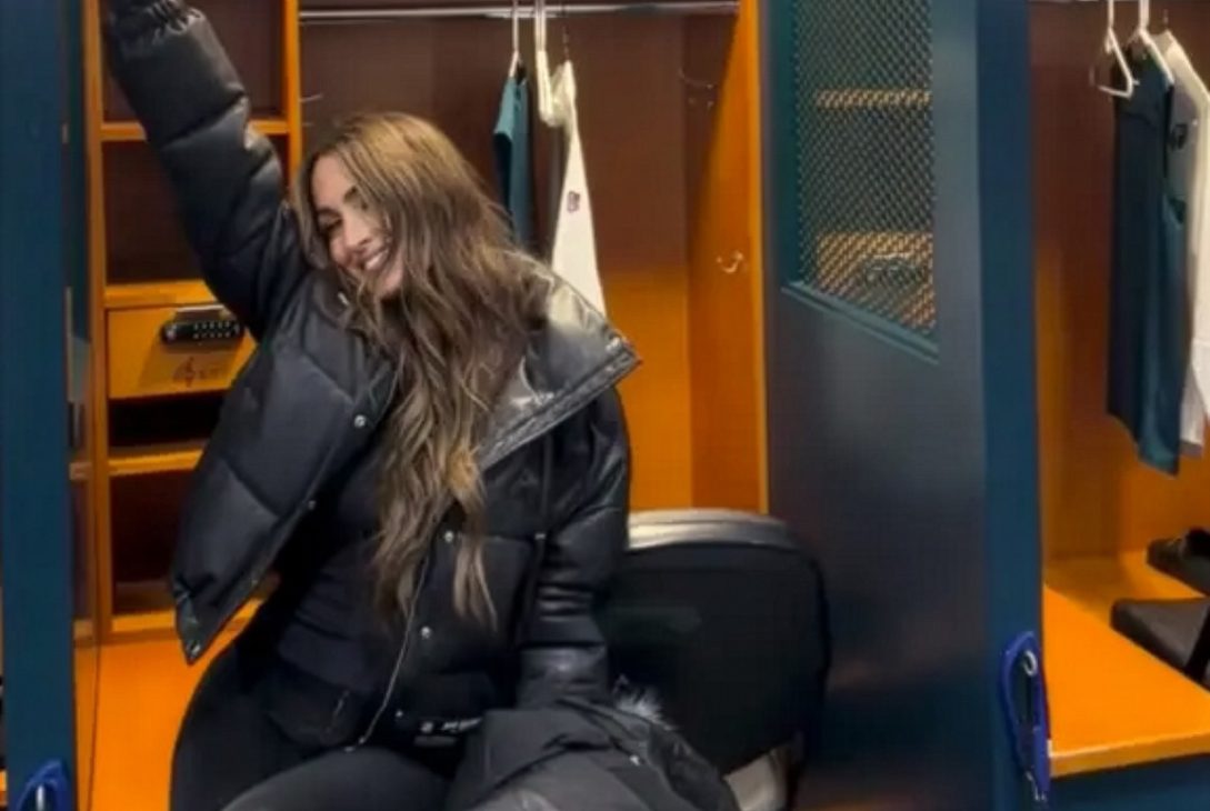 In one scene from a recently shared video, Bella is shown posing inside DeJean’s locker, a moment brief but deliberate. The setting is unmistakable, intimate by implication alone. It was followed by footage of the pair out together later that night, relaxed and visibly close while celebrating the Eagles’ emphatic 31–0 victory — a win that left little doubt on the field and, increasingly, little ambiguity off it.
