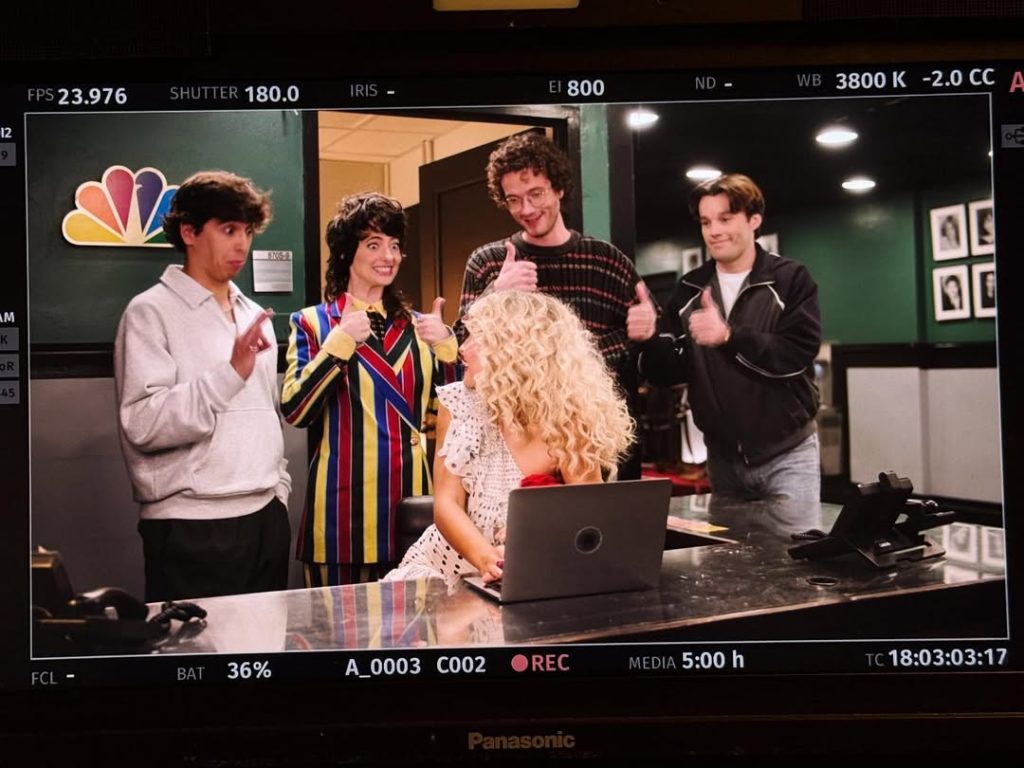 Carpenter didn’t shy away from addressing controversy either, taking on the risqué cover of her Man’s Best Friend album. “Some people got a little freaked out by the cover. I’m not sure why,” she said. On screen, a zoomed-out version revealed a comedic context: Bowen Yang helping Carpenter up after Martin Short shoved her from the buffet line. “That’s just how they cropped it,” she quipped, leaving no doubt she was in on the joke.