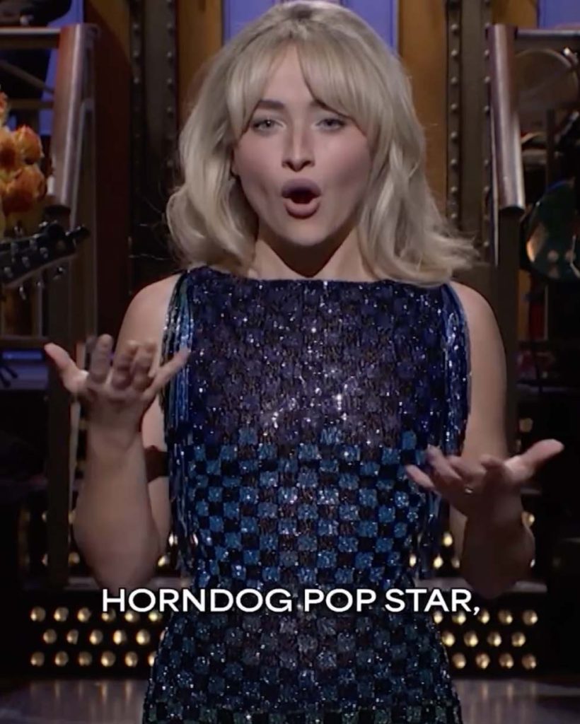 Sabrina Carpenter stepped onto the “Saturday Night Live” stage with her usual mix of charm and calculated chaos, turning the spotlight on the persona she’s been cultivating — the one critics call “horndog popstar.”