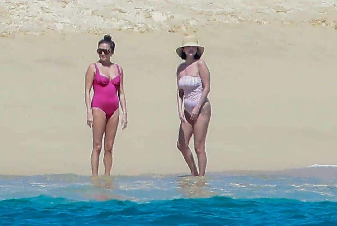 Gomez lounged beachside in a pink one-piece swimsuit, topped with a wide-brim straw hat and oversized black sunglasses, blending glamour with casual ease. Later, the group boarded a yacht, where Dobrev opted for a black bikini while Gomez kept her pink swimsuit under a white cover-up.